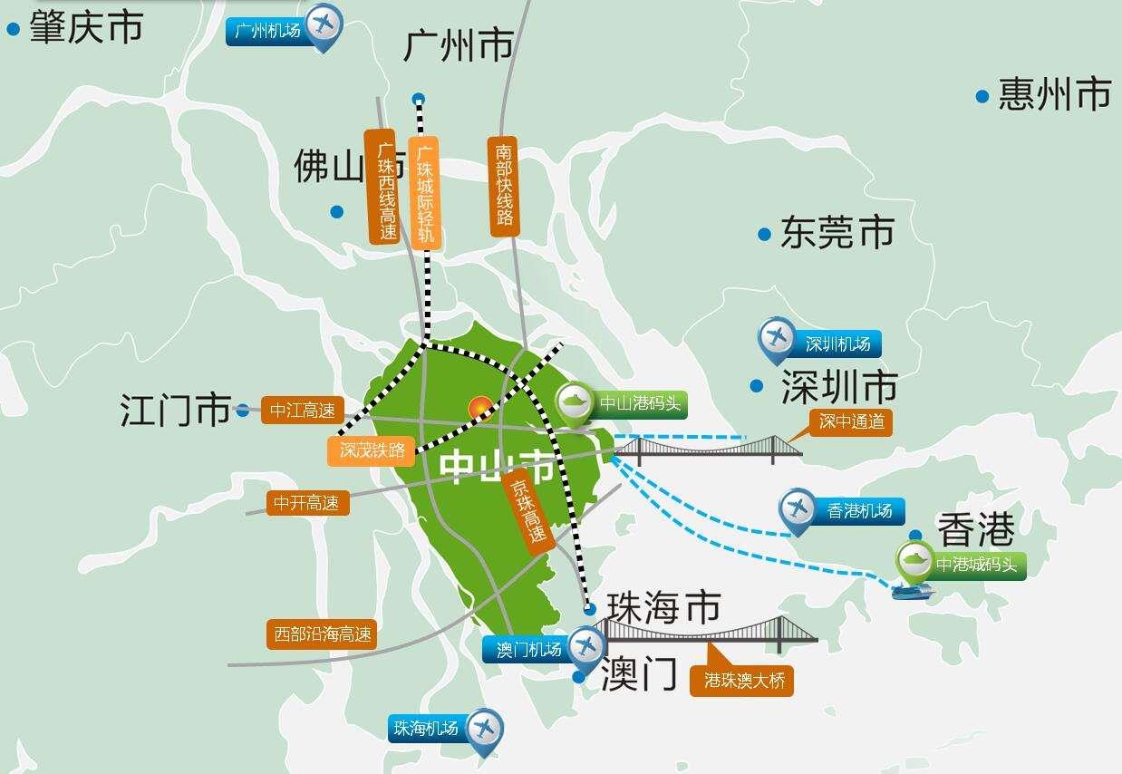 各机场均距离高铁站较远,优先换乘大巴车到中山市。广州机场大巴车较多,优先选择广州机场出行。