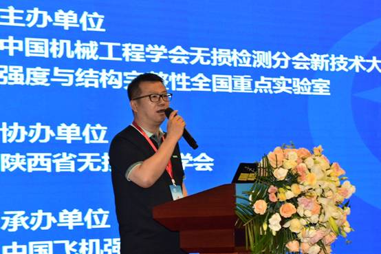 中国机械工程学会无损检测分会副理事长周正干代表学会在开幕式上致辞。周副理事长介绍说:本次会议以飞机结构原位检测技术为交流主题,在我印象中还是第一次。本次会议聚焦近年来的飞机结构强度试验和检修中遇到的检测难题,报告嘉宾来自军民机设计单位、试验、运营维修单位、著名高校的多名专家,帮助大家了解和研讨飞机结构损伤检测问题和解决思路。