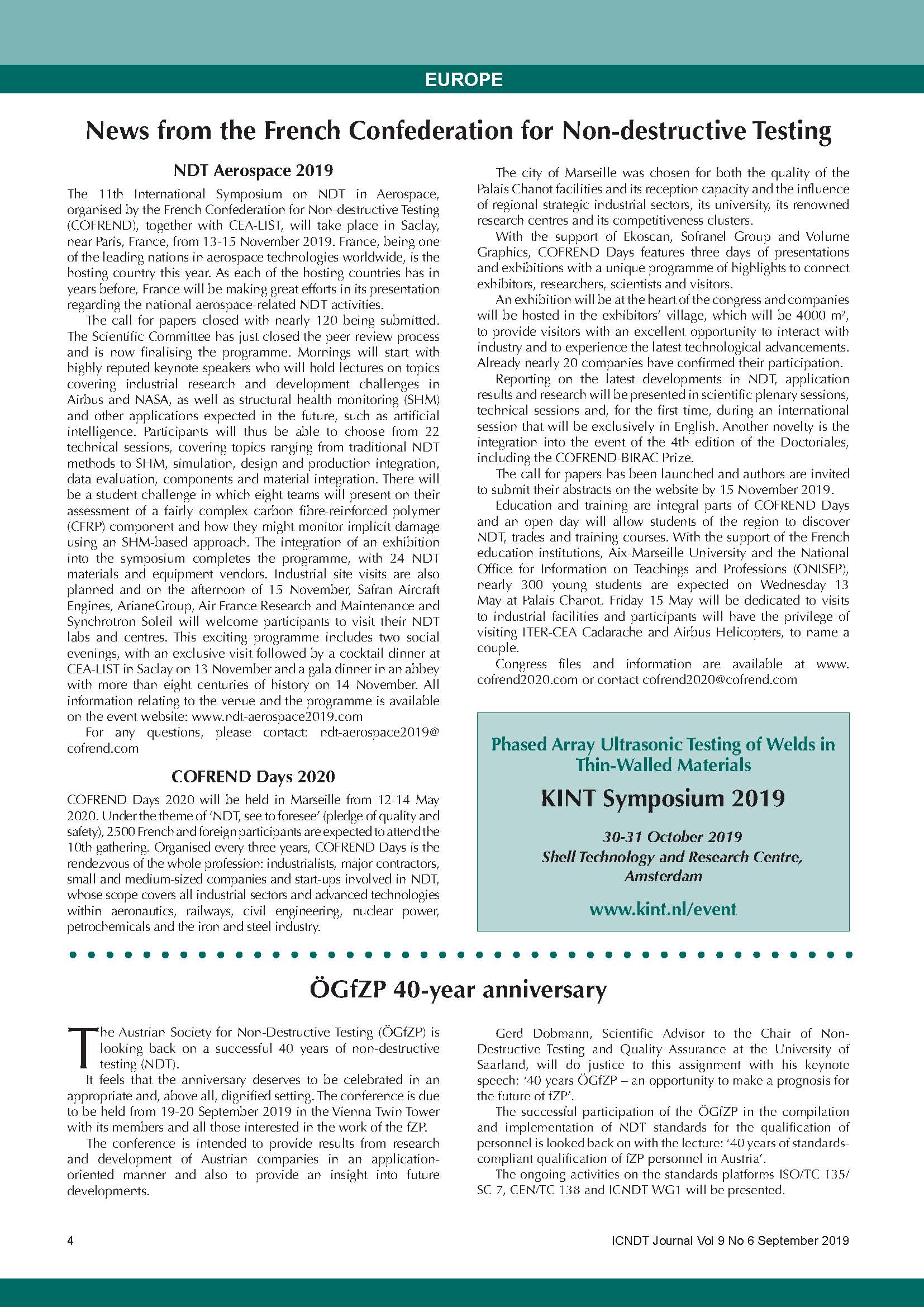 ICNDT Journal in September