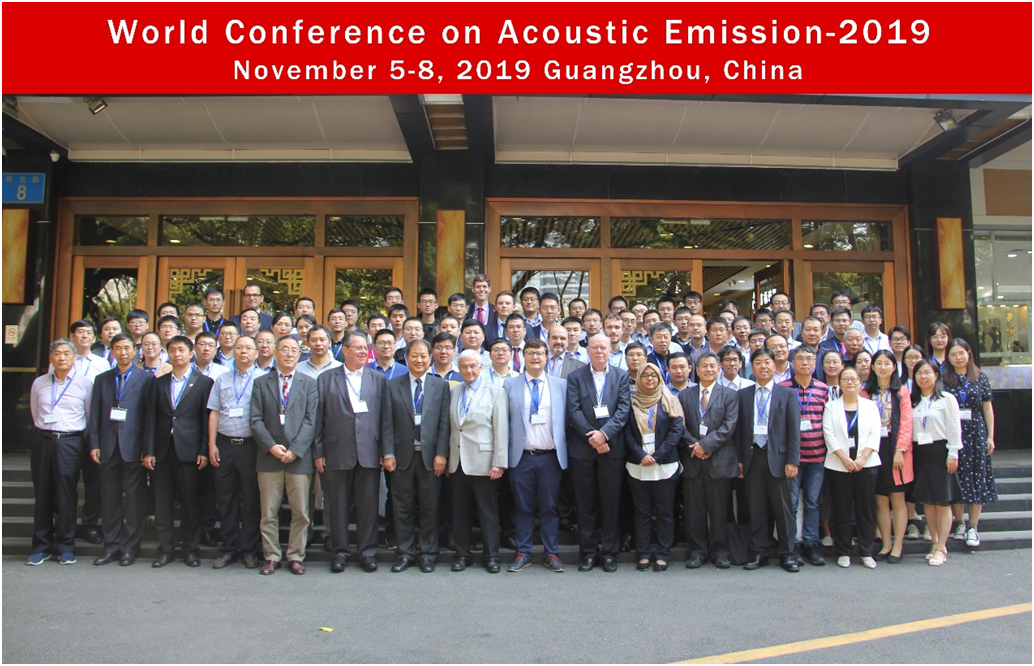 2019年11月5-8日,“2019年世界声发射会议”(World Conference on Acoustic Emission - 2019,简称WCAE-2019)在广州隆重举行,会议开幕式由本次大会主席、国际声发射学会荣誉主席、中国机械工程学会无损检测分会理事长、中国特种设备检测研究院副院长沈功田研究员主持,国际声发射学会主席、美国声发射工作组(AEWG)前主席Gary Qi教授,欧洲声发射委员会(EWGAE)前主席Hartmut Vallen先生,国际声发射创新研究院(IIIAE)主席及日本声发射委员会(JCAE)执委Tomoki Shiotani教授等致欢迎词。来自美国、英国、德国、日本、奥地利、韩国和中国等13个国家的108名代表出席了本次会议。