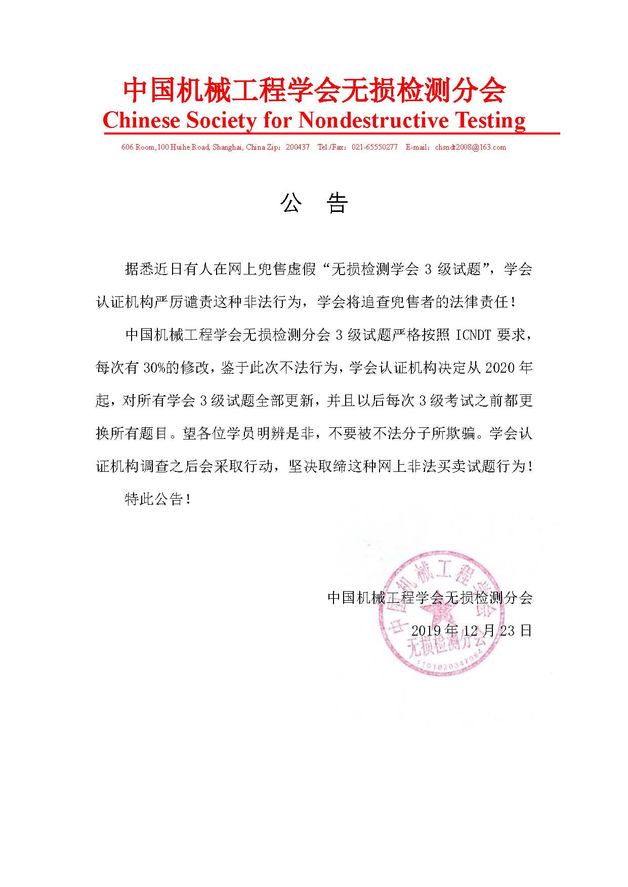 严厉谴责“不法人士在网上兜售虚假学会3级试题”的公告